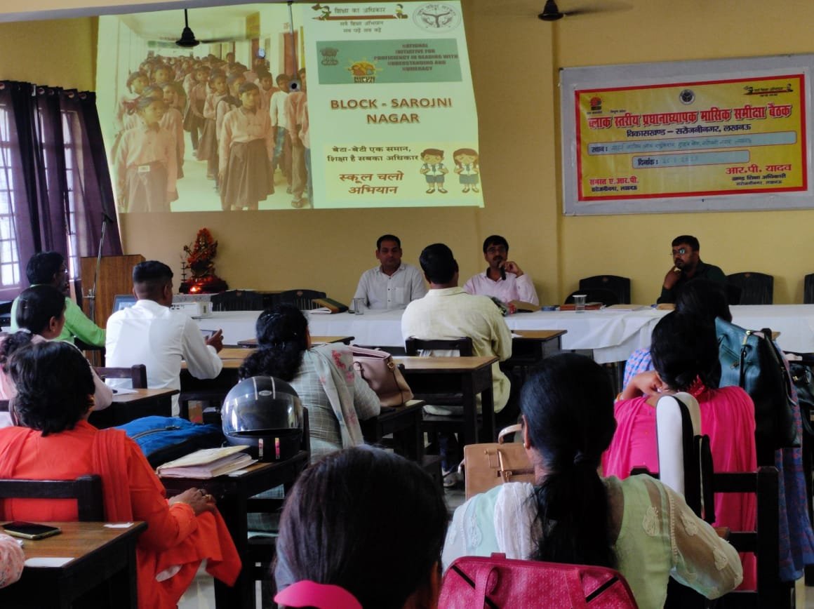 लखनऊ। निपुण विद्यालय की कार्य योजना को लेकर सरोजनीनगर ब्लाक कार्यालय में शनिवार को परिषदीय विद्यालयों के प्रधानाध्यापाकों की ब्लॉक स्तरीय मासिक समीक्षा बैठक आयोजित हुई। सरोजनीनगर के खंड शिक्षाधिकारी आरपी यादव के नेतृत्व में आयोजित इस बैठक में मुख्य रूप से विद्यालय की कार्य योजना, दिसम्बर तक प्रत्येक बच्चे को निपुण् बनाने तथा नामांकन के सापेक्ष शत प्रतिशत उपस्थिति के साथ अभिभावकों से आत्मीय सम्बन्ध सम्बन्धित विषयों पर चर्चा की गयी।