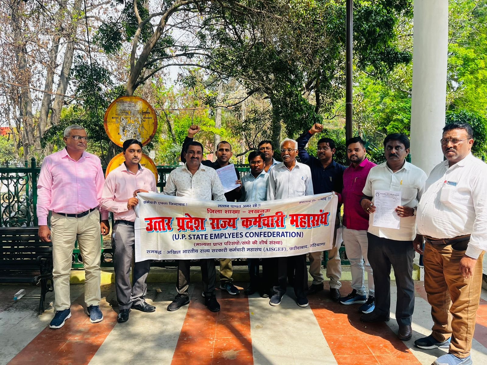 लखनऊ। नई दिल्ली के तालकटोरा स्टेडियम में गत 8 दिसम्बर को केन्द्र सरकार व राज्य सरकार के कर्मचारियों का संयुक्त कनवेशन व 26 फरवरी को प्रयागराज उत्तर प्रदेश में हुए राज्य स्तरीय कन्वेंशन में लिये गये निर्णय के क्रम में लखनऊ में कर्मचारी नेता स्व० बीएन सिंह की मूर्ति पर इकठ्ठा होकर कर्मचारियों ने पुरानी पेंशन बहाली सहित सात सूत्री मांगों को लेकर प्रधानमंत्री को स्थानीय पुलिस कमिश्नर के माध्यम से मांग पत्र प्रेषित किया।