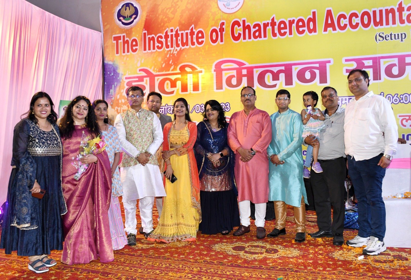 लखनऊ। इंस्टीट्यूट आफ चार्टर्ड अकाउंटेंट्स आॅफ इंडिया की लखनऊ ब्रांच ने रविवार को यूपी बैडमिंटन एकेडमी गोमती नगर में नगर के सभी चार्टर्ड अकाउंटेंट्स के साथ मिलकर होली मिलन समारोह का आयोजन किया। इस समारोह में चार्टर्ड अकाउंटेंट के परिवार के सदस्यों ने भी बढ़ चढ़कर हिस्सा लिया। कार्यक्रम का शुभारंभ श्रीगणेश वंदना के साथ हुआ होली मिलन समारोह में रंगारंग सांस्कृतिक कार्यक्रम का आयोजन भी किया गया, जिसमें फिल्मी और लोक धुनों पर लोगों ने जमकर डांस किया। इसके बाद उपस्थित लोगों ने फूलों, रंगो और गुलाल से जमकर होली खेली।