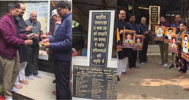 वाराणसी कचहरी में हुए सिलसिलेवार धमाकों (Kachahari Bomb Blast) की आज 18वीं बरसी पर अधिवक्ता समुदाय ने भावपूर्ण श्रद्धांजलि दी। अधिवक्ता समाज ने उन शहीद साथियों को याद किया, जिन्होंने न्याय के इस मंदिर में आतंकियों की कायराना हरकत का सबसे बड़ा दर्द झेला था। इस दौरान बड़ी संख्या में वकील शहीद स्थल पर एकत्रित हुए और मोमबत्तियाँ जलाकर साथियों को स्मरण किया। पूरा परिसर “शहीद भोला सिंह अमर रहें”, “शहीद ब्रह्मप्रकाश शर्मा अमर रहें”, “शहीद बुद्धिराज पटेल अमर रहें” जैसे नारों से गूंज उठा।