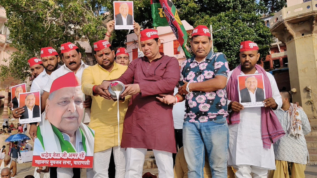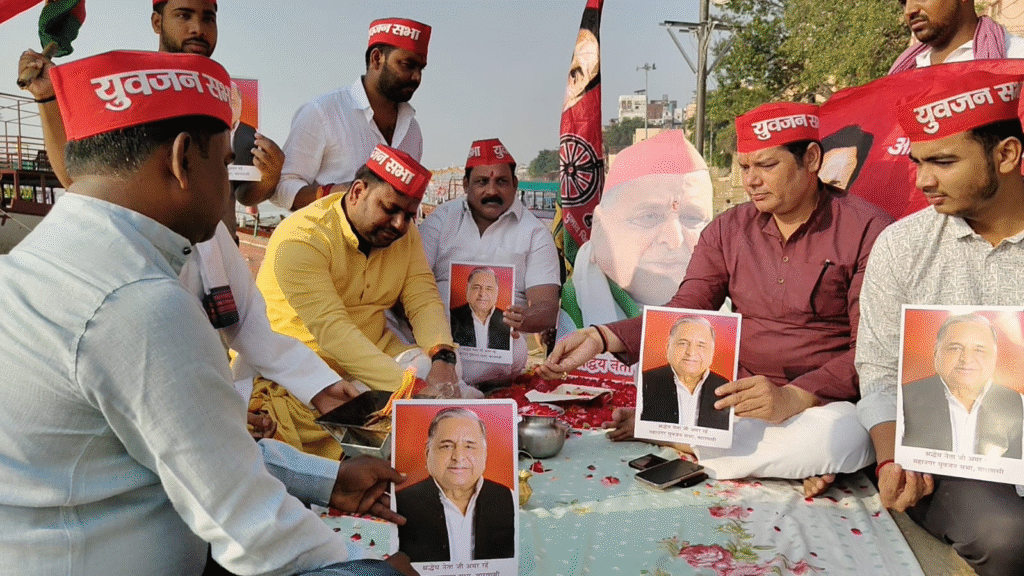 काशी के गायघाट पर समाजवादी पार्टी (सपा) के संस्थापक और उत्तर प्रदेश के पूर्व मुख्यमंत्री स्वर्गीय मुलायम सिंह यादव (Mulayam Singh Yadav) की तीसरी पुण्यतिथि पर शुक्रवार को एक भव्य अनुष्ठान का आयोजन किया गया। समाजवादी पार्टी युवजन सभा के बैनर तले आयोजित इस कार्यक्रम में सपा कार्यकर्ताओं ने अपने प्रिय नेता को भावपूर्ण श्रद्धांजलि अर्पित की और उनकी आत्मा की शांति व तृप्ति के लिए वैदिक मंत्रों के साथ हवन-पूजन संपन्न कराया।