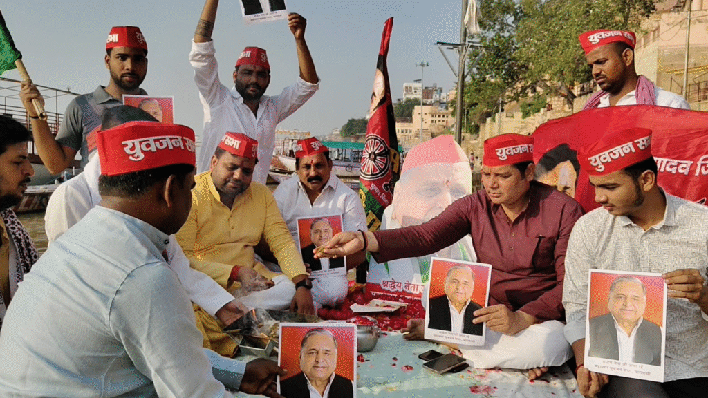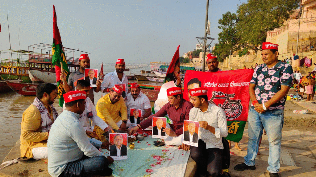 कार्यक्रम में पांच विद्वान ब्राह्मणों द्वारा वैदिक मंत्रोच्चार के साथ हवन और पूजन किया गया, जिसके बाद मां गंगा का दुग्धाभिषेक कर मुलायम सिंह यादव (Mulayam Singh Yadav) को श्रद्धांजलि दी गई। इस अवसर पर गायघाट को समाजवादी रंग में रंगा गया, जहां स्वर्गीय नेता का एक विशाल कटआउट स्थापित किया गया। सपा कार्यकर्ता लाल टोपी धारण कर अपने नेता के प्रति सम्मान और एकजुटता का प्रदर्शन करते नजर आए।
