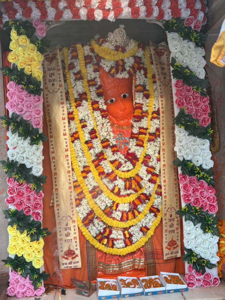 प्रातःकाल हनुमत लला का विधिवत पंचामृत स्नान कराया गया। इसके बाद तेल और सिंदूर का लेपन कर उन्हें नूतन वस्त्र धारण कराए गए। पंडित राजू पांडेय द्वारा गेंदा, तुलसी और कुंद सहित सुगंधित पुष्पों की मालाओं से आकर्षक शृंगार किया गया।