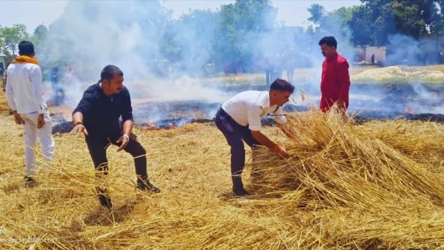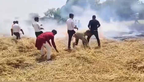 दरअसल, लखनो तिराहा के पास पुलिस द्वारा चेकिंग चल रहा था। उसी बीच तिरहा के पास स्थित एक गेहूं के खेत में अचानक आग लग गयी। जिसके चलते मौके पर अफरा-तफरी मच गयी। तेज हवा के के चलते आग तेजी से फैल रही थी, जो आसपास के खेतों के लिए बड़ा खतरा बन चुकी थी।