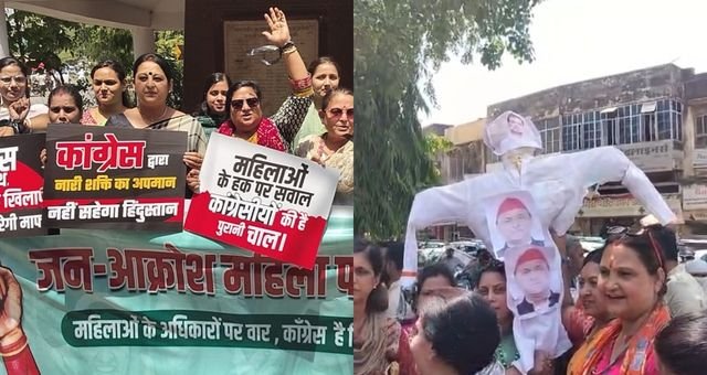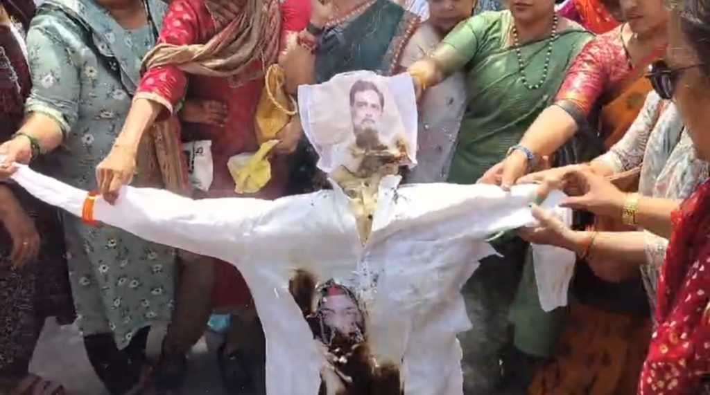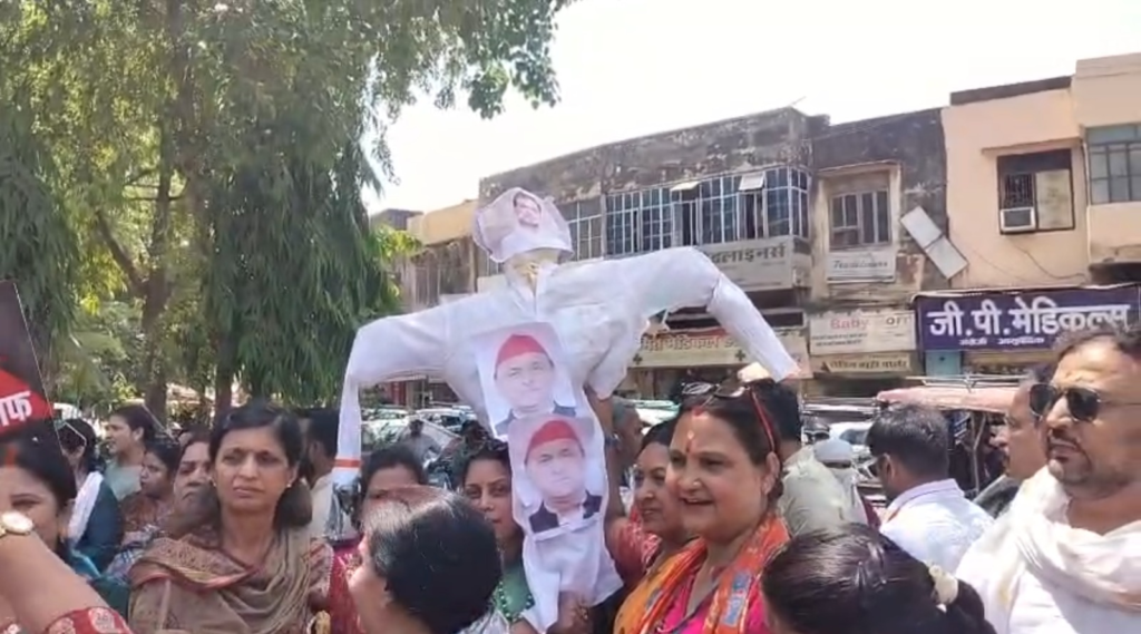 राहुल गांधी और अखिलेश यादव का पुतला फूंका