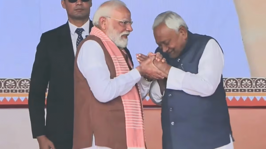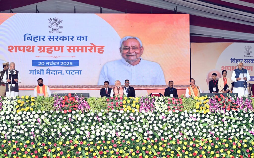 गांधी मैदान में आयोजित शपथ ग्रहण समारोह (CM Nitish Oath Ceremony) भव्यता और सांस्कृतिक रंगों से सराबोर था। पीएम नरेंद्र मोदी, अमित शाह, राजनाथ सिंह, योगी आदित्यनाथ, मोहन यादव और देवेंद्र फडनवीस जैसे दिग्गज चेहरे मंच पर मौजूद थे।