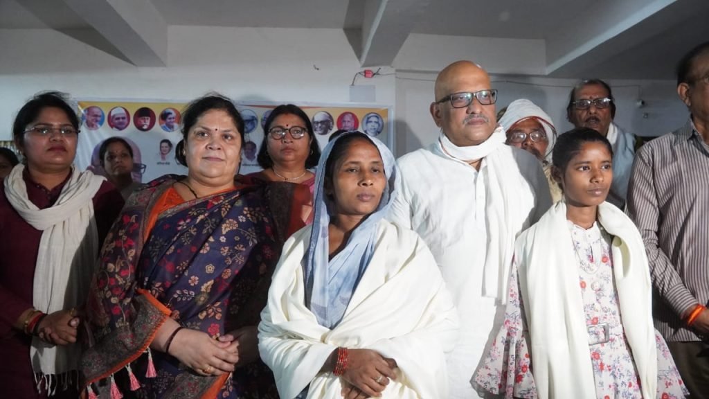 वहीं अजय राय ने कहा कि कांग्रेस पार्टी श्रमिको के हक अधिकार के लिए सदैव खड़ी है। अंतिम पंक्ति के व्यक्ति की आवाज ही हमारी आवाज है। यह मेरी बहन वही चंदा देवी है। बीते 5 अप्रैल को जिनके पति घूरेलाल सीवर सफाई के दौरान मृत हुए थे। उनके पास सेफ्टी किट नही था, जिसके कारण सीवर में उतरने के बाद दम घुटने से मौत हो गई थी। यह हाल प्रधानमंत्री जी के संसदीय क्षेत्र का है, जहाँ सारा व्यवस्था ही ध्वस्त है। ऐसे हम लोग इंडिया गठबंधन लोग इनके आवास गए व हर सम्भव मदद व लड़ाई लड़ने हेतु व आजीवन परिवार के साथ खड़े रहने का विश्वास दिया।