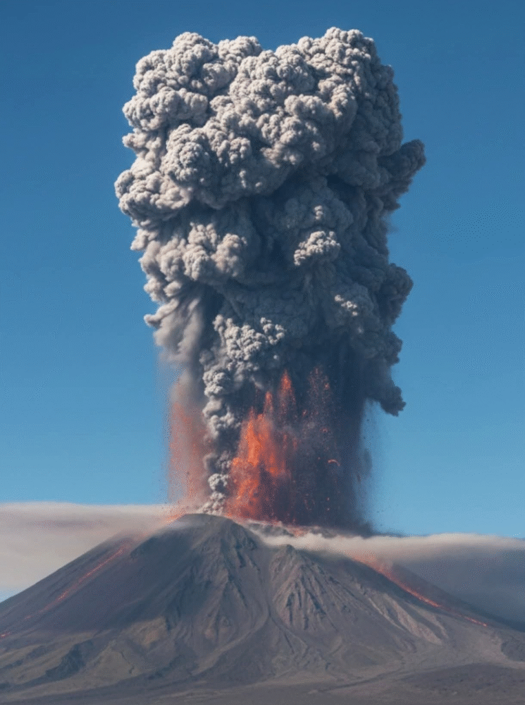 Volcano: आसमान में काले बदल जैसा छाया है गुबा
