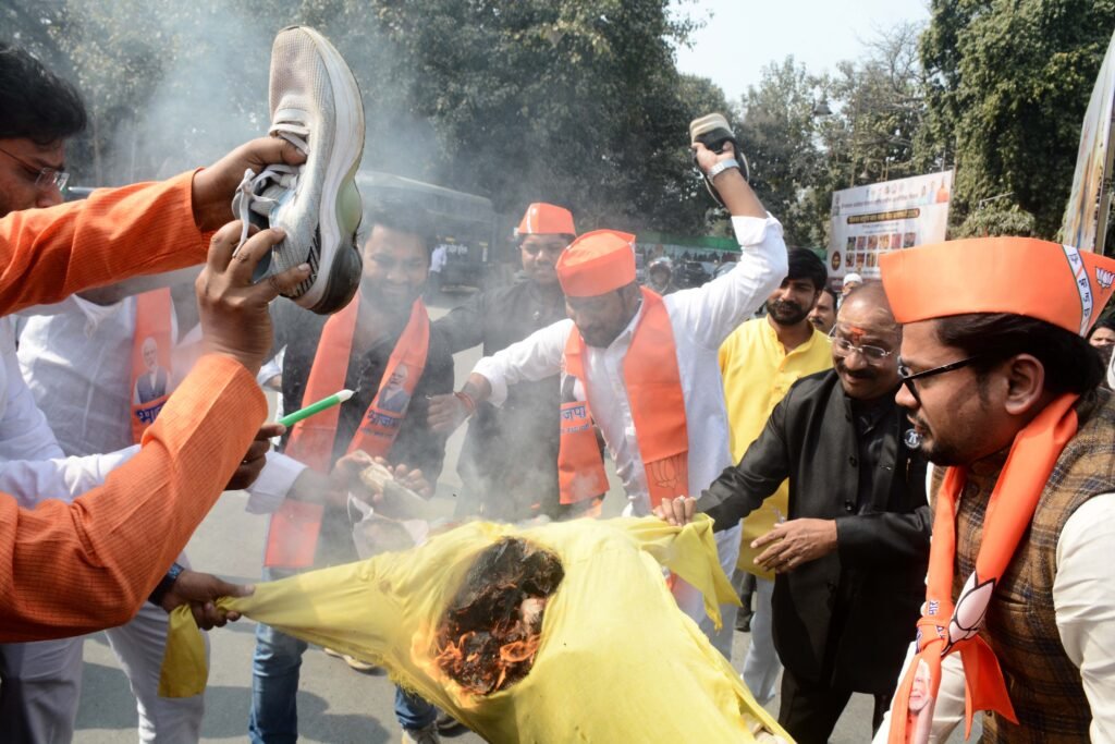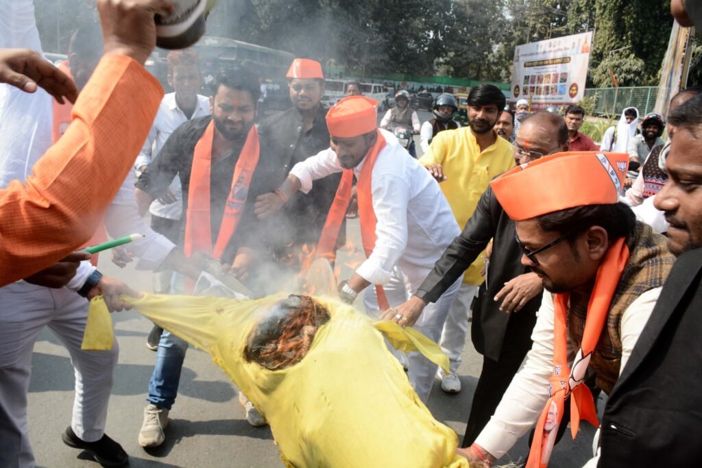 दिल्ली में आयोजित एआई समिट के दौरान हुए कांग्रेस के प्रदर्शन को लेकर शुक्रवार को भारतीय जनता पार्टी युवा मोर्चा के कार्यकर्ताओं ने सर्किट हाउस के बाहर कांग्रेस नेता राहुल गांधी (Rahul Gandhi) के खिलाफ जोरदार विरोध प्रदर्शन किया। कार्यकर्ताओं ने राहुल गांधी का पुतला फूंका और चप्पलों से पिटाई कर अपना आक्रोश जताया।