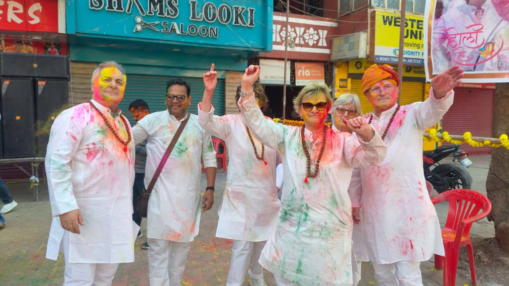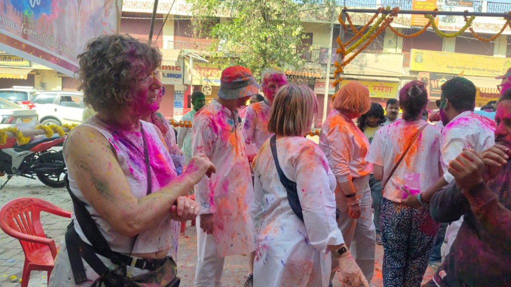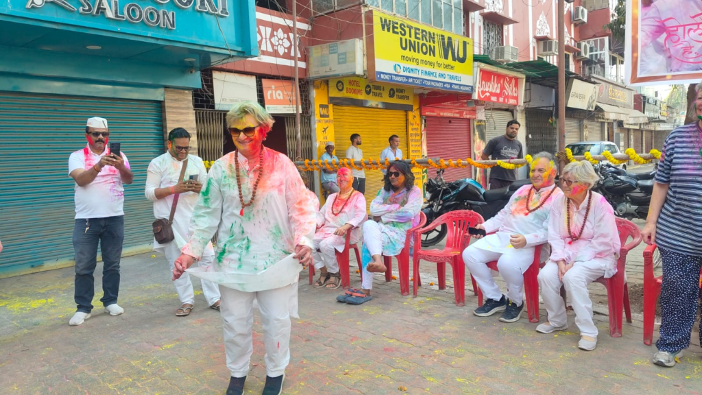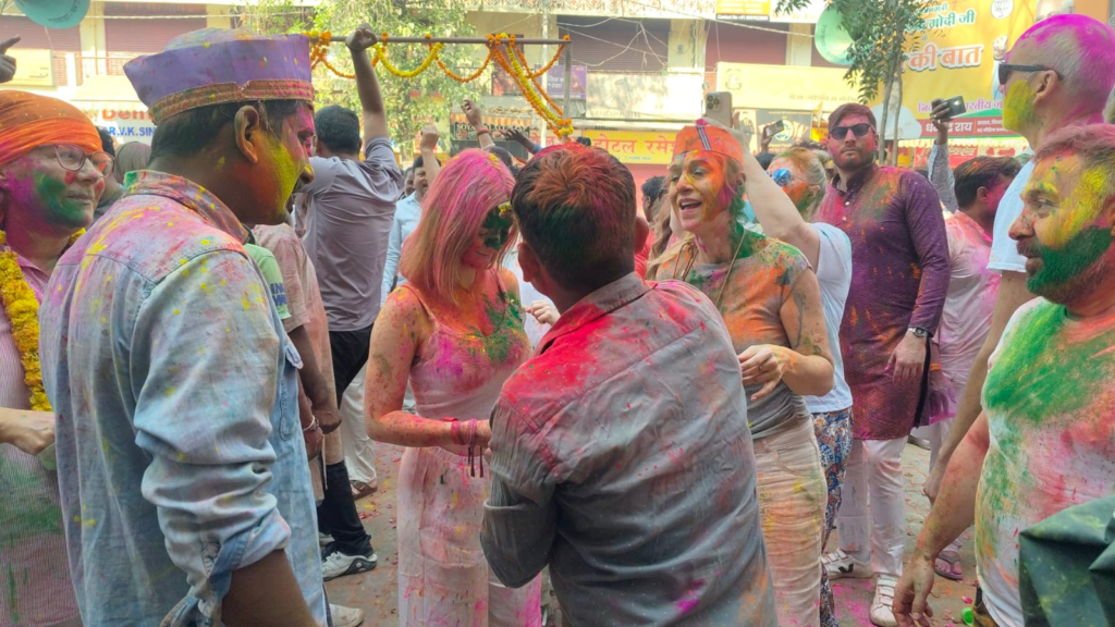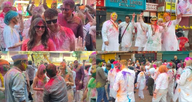 अबीर-गुलाल से सराबोर सैलानी एक-दूसरे को दौड़ा-दौड़ाकर रंग लगाते नजर आए। ढोल की थाप पर नाचते विदेशी मेहमानों को देख स्थानीय लोग भी उत्साह से भर उठे।