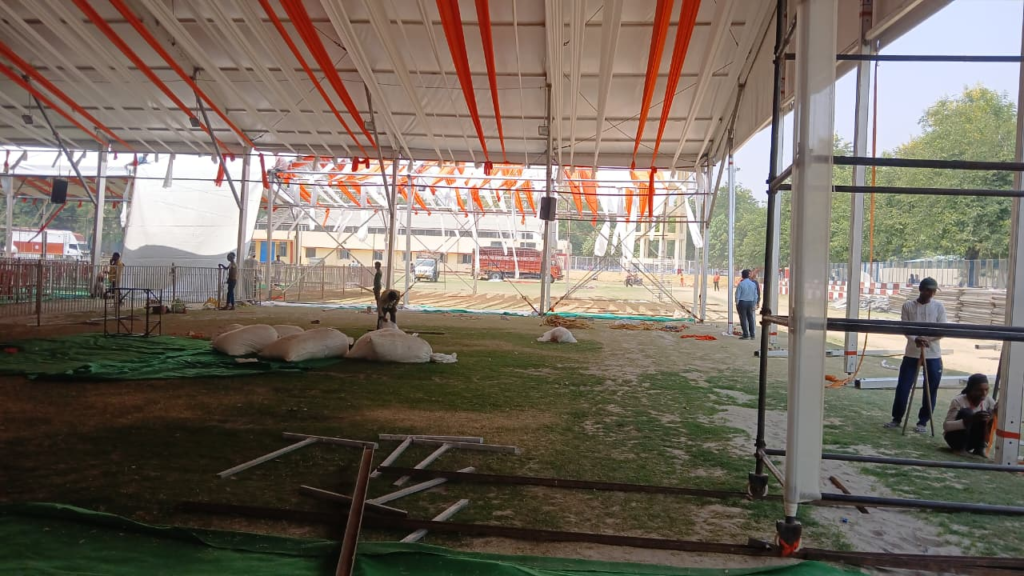 जर्मन हैंगर तकनीक से बन रहा भव्य पंडाल