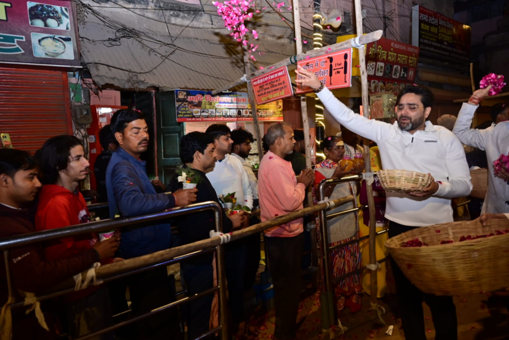 महाशिवरात्रि (Mahashivratri) के पावन पर्व पर श्री काशी विश्वनाथ मंदिर में रविवार तड़के से ही आस्था का जनसैलाब उमड़ पड़ा। मंदिर के सभी प्रवेश द्वारों पर चार किलोमीटर से अधिक लंबी कतारें लग गईं। काशी विश्वनाथ कॉरिडोर के आसपास की गलियों, घाटों और मुख्य सड़कों पर ‘हर-हर महादेव’ के जयघोष गूंजते रहे। शनिवार रात से ही श्रद्धालुओं की कतार लगनी शुरू हो गई थी। वहीं कतारबद्ध श्रद्धालुओं पर मंदिर एसडीएम शम्भू शरण मिश्र ने पुष्पवर्षा की। उनका स्वागत किया और उत्साह भी बढ़ाया। इसके साथ ही गंगा स्नान के लिए भी घाटों पर भारी भीड़ उमड़ी।