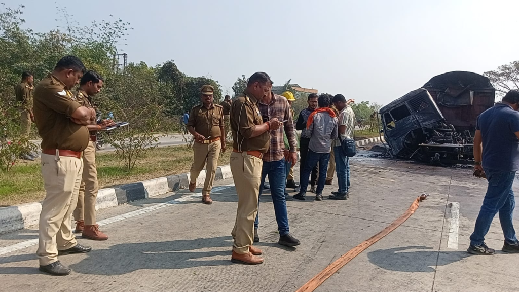 Mau: मौके पर चालक की जिंदा जलकर मौत