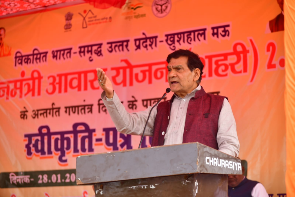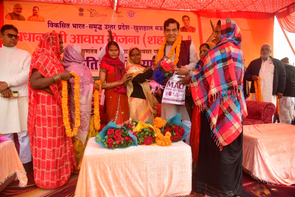 नगर विकास एवं ऊर्जा मंत्री ए.के. शर्मा ने मऊ(Mau) भ्रमण के दौरान नगर पालिका परिषद मऊ क्षेत्र के अंतर्गत प्रधानमंत्री आवास योजना (शहरी) 2.0 के लाभार्थियों को स्वीकृति पत्र वितरित किए। स्थानीय बहुद्देशीय भवन मंगलम में आयोजित कार्यक्रम को संबोधित करते हुए मंत्री ने प्रधानमंत्री नरेंद्र मोदी के प्रति आभार व्यक्त किया और कहा कि आज़ादी के बाद पहली बार समाज के अंतिम पायदान पर खड़े व्यक्ति की मूलभूत जरूरतों—रोटी, कपड़ा और मकान—को प्राथमिकता के साथ पूरा किया जा रहा है।
