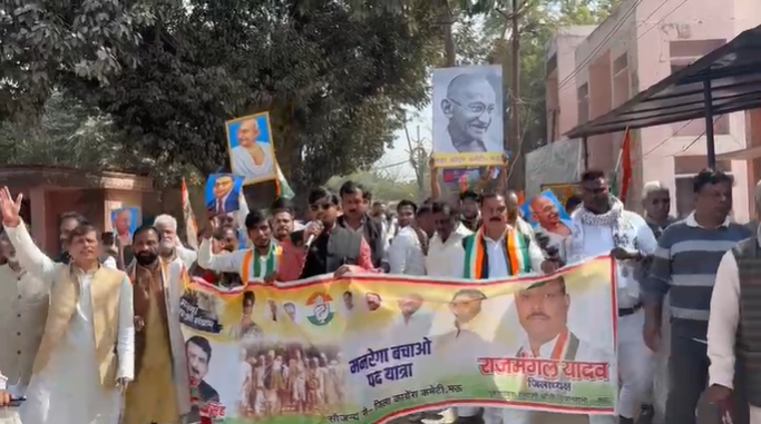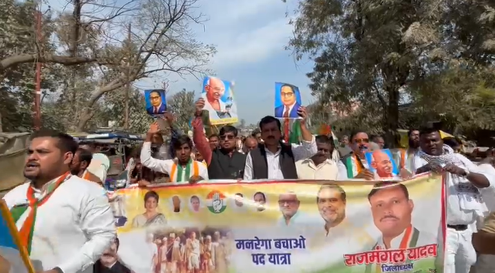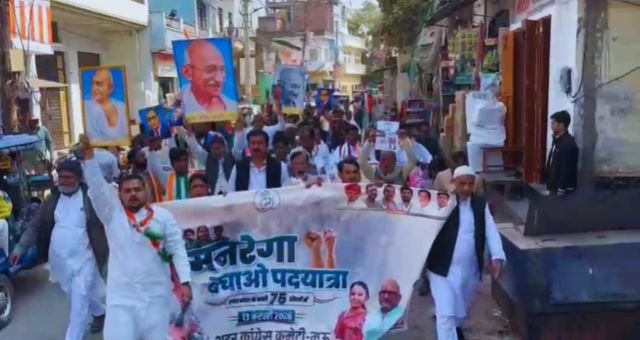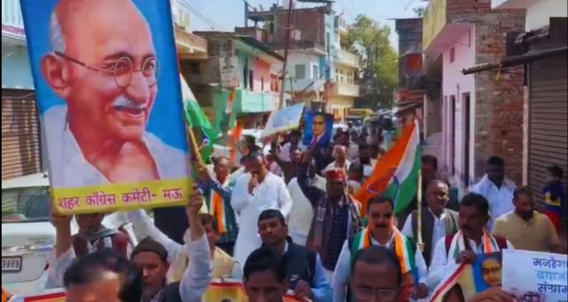 Mau: कांग्रेस कार्यकर्ताओं ने निकाली “मनरेगा बचाओ” पद यात्रा, कहा- गरीबों का हक छीनने नहीं देंगे