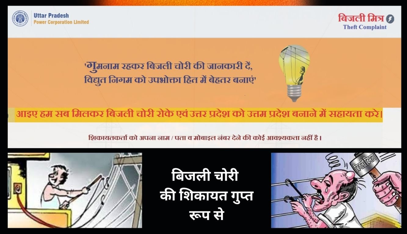 बिजली चोरों (Power Theft Online Information) का पता लगाने के लिए उत्तर प्रदेश पावर कार्पाेरेशन की वेबसाइट www.upenergy.in के होम पेज पर दिये गये ‘बिजली मित्र लिंक’ का उपयोग करना होगा। उसमें शिकायतकर्ता को अपना नाम, पता या फोन नंबर देने की कोई जरूरत नहीं है।