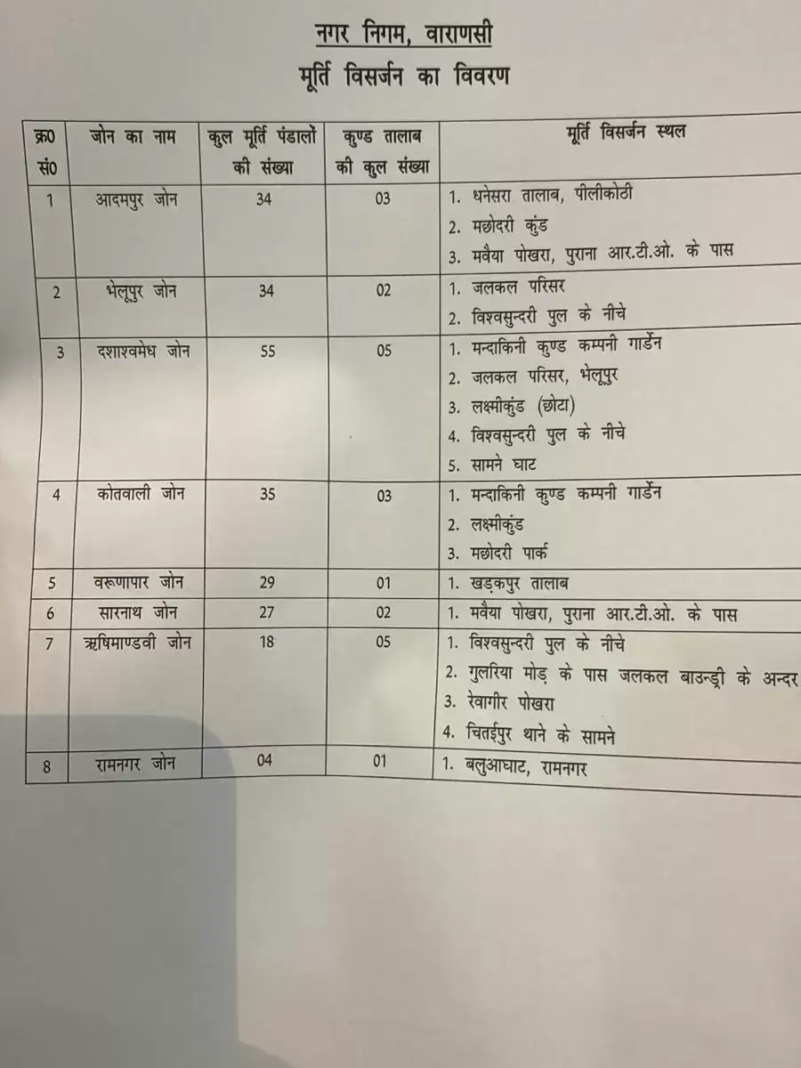 6. सारनाथ जोन (27 पंडाल): मवैया पोखरा और पुराना आरटीओ के पास निर्धारित स्थल।