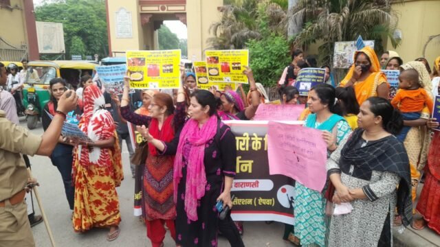 Protest against Inflation (वाराणसी): बढ़ती महंगाई को लेकर जनता अब प्रत्यक्ष रूप से सामने आ गई है। इसी बीच मंगलवार को लंका चौराहे पर एक संस्था की महिलाओं ने बढ़ती महंगाई, घटती आमदनी और एक बेरोजगारी के खिलाफ जमकर प्रदर्शन किया।