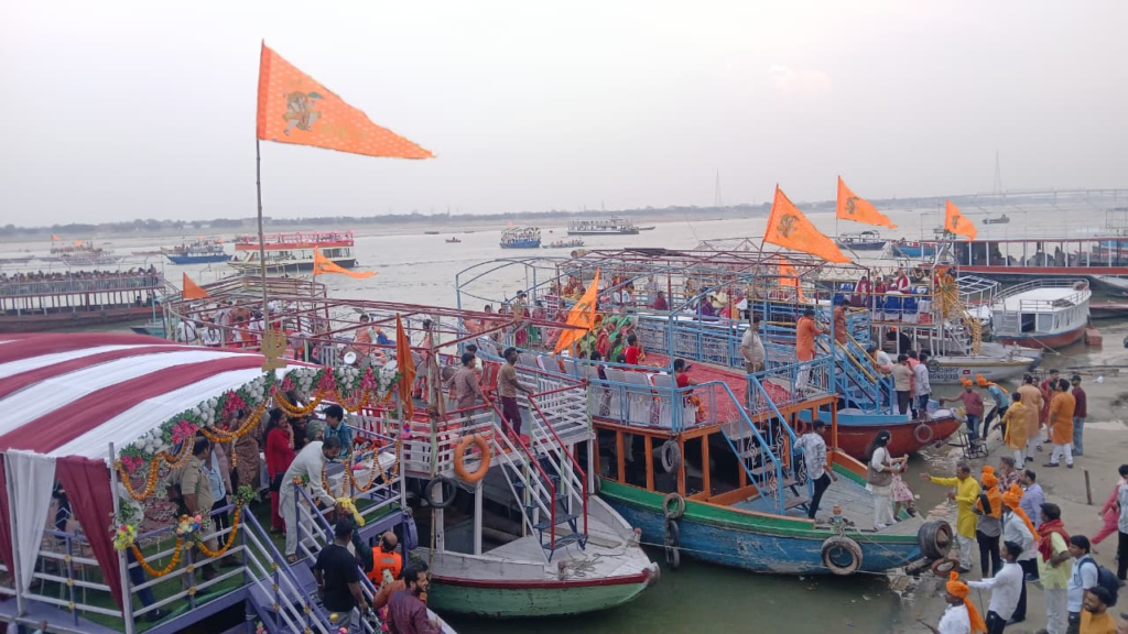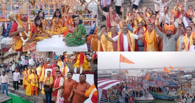 Varanasi: रामनवमी के पावन अवसर पर काशी में विश्व प्रसिद्ध ‘राम कथा मंदाकिनी’ शोभायात्रा का भव्य आयोजन किया गया। गंगा तट पर निकली इस शोभायात्रा का अद्भुत नजारा देखकर राम भक्तों में गहरी आस्था और श्रद्धा का भाव देखने को मिला। ऐसा प्रतीत हो रहा था मानो स्वयं भगवान श्रीराम ब्रह्मांड से साक्षात रूप में गंगा के तट पर विराजमान होकर भक्तों को आशीर्वाद दे रहे हों।