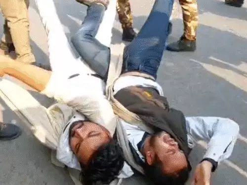 इस दौरान कार्यकर्ताओं और पुलिस के बीच नोकझोंक शुरू हो गई. मामला इतना गरमा गया कि देखते ही देखते पूरा माहौल तनावपूर्ण हो गया। NSUI के कार्यकर्ताओं व पुलिस के बीच गुत्थम गुत्थी होने लगी। पुलिसकर्मियों ने कांग्रेसी कार्यकर्ताओं को सड़क पर घसीटते हुए अपनी गाड़ी तक ले गए। NSUI अध्यक्ष वरुण चौधरी का कंधा पकड़कर धक्का दे दिया गया, वह वहीं सड़क पर ही गिर पड़े। फिर पुलिस से बचने के लिए भागने का प्रयास किया तो पुलिसकर्मियों ने उन्हें पकड़ लिया। पुलिस ने लगभग 10 गाड़ियों में 100 से ज्यादा कांग्रेस कार्यकर्ताओं को भरकर अपने साथ हिरासत में लेकर गई।