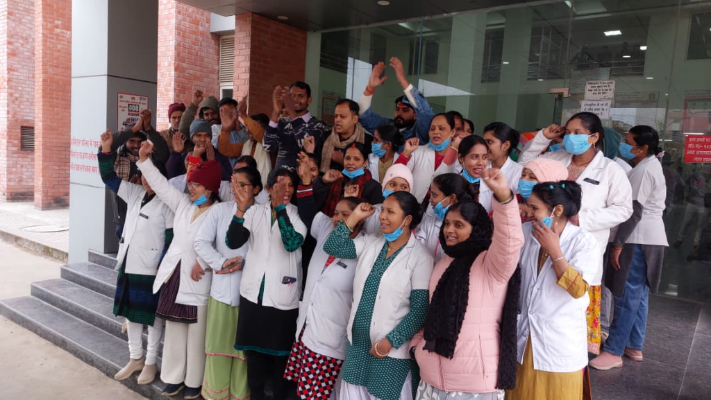 हड़ताल में लैब टेक्नीशियन, स्टाफ नर्स, वार्ड बॉय और पेशेंट हेल्पर सहित विभिन्न आउटसोर्सिंग कर्मचारी शामिल हैं। कर्मचारियों का आरोप है कि वेतन मांगने पर अधिकारियों द्वारा उन्हें डांट-फटकार कर भगा दिया जाता है और कार्य प्रबंधन द्वारा नौकरी से निकालने की धमकी भी दी जाती है।
