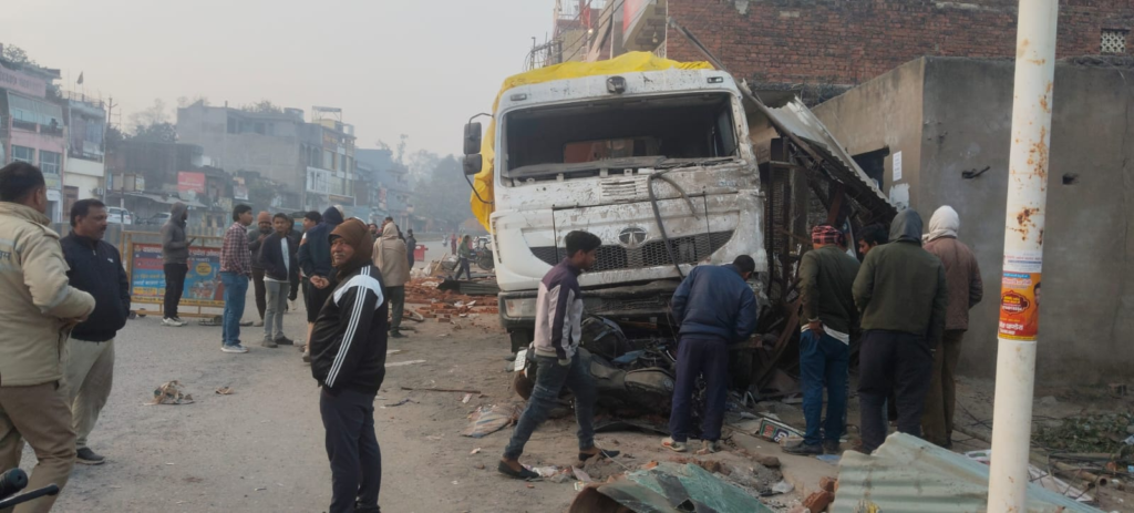 Sonbhadra: चोपन थाना क्षेत्र में शुक्रवार की तड़के एक तेज रफ्तार ओवरलोड ट्रेलर ने भारी तबाही मचा दी। सुबह करीब 3:45 बजे गुरुद्वारा इंटर कॉलेज के पास अनियंत्रित 18-चक्का ट्रेलर सड़क किनारे स्थित करीब पांच दुकानों को रौंदते हुए आगे जाकर फंस गया। हादसे में दुकानों के अगले हिस्से पूरी तरह क्षतिग्रस्त हो गए।