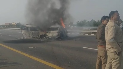 UP: बाराबंकी में बुधवार को एक्सप्रेस-वे पर एक बड़ा ही भयानक हादसा हो गया है। दो कार आपस में टकरा गयी। टक्कर इतनी भीषण थी, कि कार में आग लग गयी। लेकिन कुछ लोग कार में फसे रह गए। जिनकी जलने से मौके पर ही दर्दनाक मौत हो गयी। मौके पर पहुंची पुलिस ने बचे घायलों को अस्पताल में ले गये।