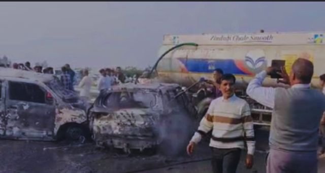 दरअसल, बाराबंकी (UP) में पूर्वांचल एक्सप्रेस-वे पर दो कारें आपस में टकरा गयी। टक्कर इतनी जोरदार थी कि कार में बैठे लोग 20मी दूर जा गिरे। टकराव के बाद कार में आग लग गयी। जिसके बाद कुछ लोग किसी तरह बाहर निकलकर सड़क पर लेट गए। वहीं, पांच लोग कार के गेट का लॉक नहीं खोल सके और अन्दर ही जलकर उनकी दर्दनाक मौत हो गयी। हांलाकि मौके पर पहुंची पुलिस ने बचे घायलों को अस्पताल में भर्ती कराया।