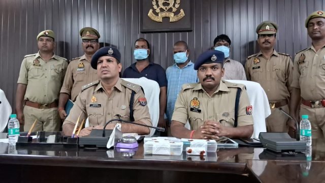 Varanasi: चोलापुर थाने की पुलिस ने किराये का कमरा लेकर महिलाओं के आभूषण की ठगी करने वाले तीन शातिरों को गिरफ्तार किया है। पुलिस ने उनके पास से चोरी की एक सोने की चैन, चोरी के 3 मोबाइल, घटना में प्रयुक्त बाइक व 16,550 रुपए नगदी बरामद किया है। घटना का खुलासा डीसीपी वरुणा जोन चंद्रकांत मीणा ने किया। पुलिस आरोपियों के खिलाफ अग्रिम कार्यवाही में जुटी रही।