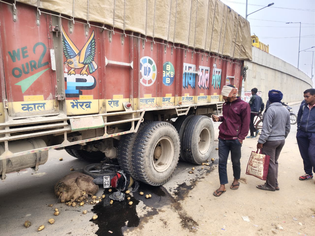 वहीं इस भयानक हादसे के दौरान बाइक पूरी तरह से क्षतिग्रस्त हो गयी। हांलाकि बाइक सवार बालेराम (Varanasi) निवासी था, जो मुरीदपुर जा रहा था। इसी दौरान बलुआघाट से चौबेपुर की तरफ आ रहे ट्रक से टक्कर होने से ये हादसा हो गया। साथ ही घायल की पहचान बलवंत कुमार (35 वर्ष) के रूप में हुई है। हादसे के दौरान बाइक पर लदा किराने का सारा सामान आलू, प्याज और अन्य समान ट्रक के नीचे दब गया, जिससे पूरा सामान खराब हो गया।
