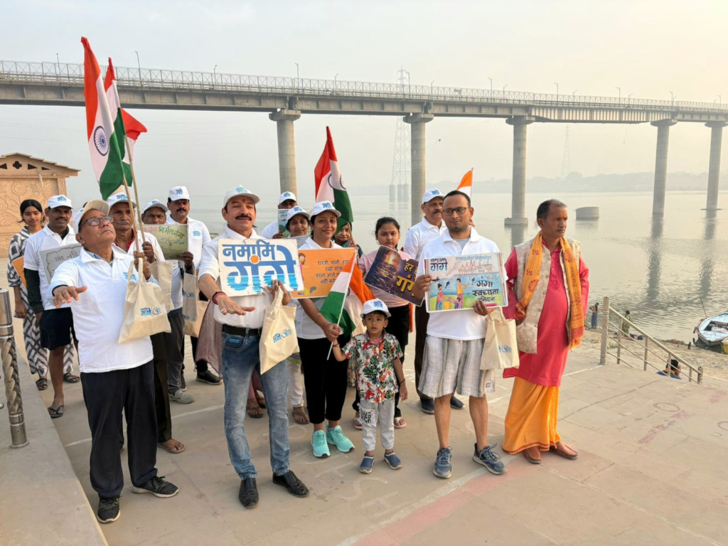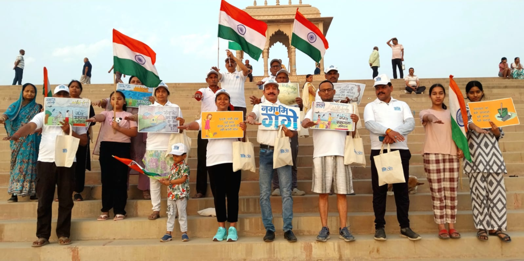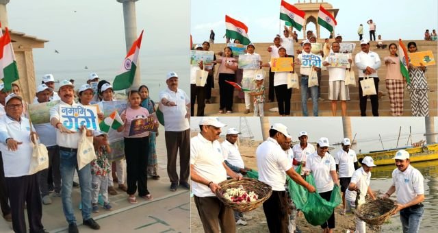 वहीं सफाई से पहले नमामि गंगे के स्वयंसेवकों ने आमजन के साथ स्वच्छता का संकल्प लिया। इतना ही नहीं, सदस्यों ने सामने घाट पर उपस्थित माताओं , बहनों, युवा, बुजुर्गों के साथ राष्ट्रध्वज और स्वच्छता स्लोगन लिखी तख्तियां, और कपड़े के झोले लेकर लेकर पदयात्रा निकाली।