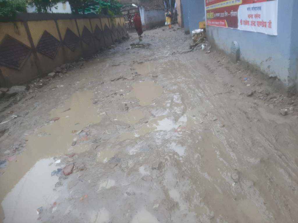 Varanasi: सामनेघाट इलाके में स्थित कृष्णा नगर जानकी नगर कॉलोनी की सड़क इस वक़्त बदहाली की मार झेल रहा है। पाइप लाइन डालने के लिए खुदाई करने के बाद कर्मचारियों ने उसके ऊपर से मिट्टी डालकर गड्ढे को पाट दिया। फिर क्या हुआ बारिश के चलते सड़क की हालत बद्द से बदत्तर हो चुकी है। जल्दी बाजी में गड्ढा ठीक से नहीं पटने के कारण बारिश के बाद इस रास्ते से लोगों का आना-जाना दुश्वार हो गया है।