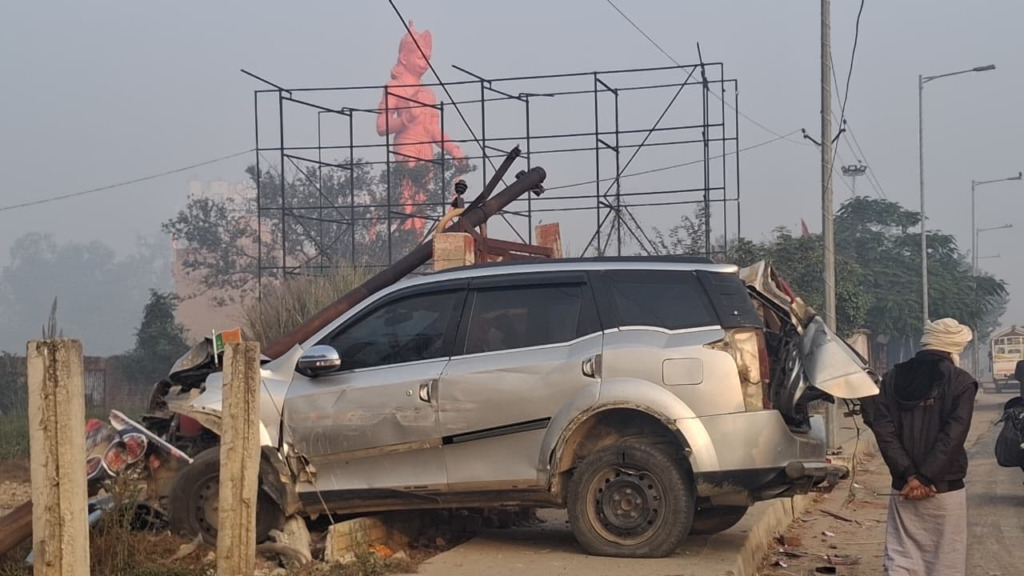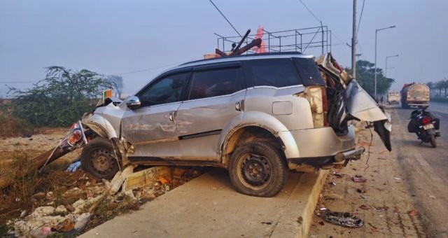 Varanasi: बाबतपुर मार्ग पर काजीसराय बाज़ार के समीप गुरुवार सुबह एक भीषण सड़क हादसा हो गया। सुबह लगभग 6 बजे कंटेनर और कार में जोरदार टक्कर होने से अफरातफरी मच गई। टक्कर इतनी तेज थी कि कार सड़क से छिटककर पटरी पार करते हुए सीधे नाले के समीप लगे 1100 वोल्ट के बिजली खंभे से जा टकराई और खंभा टूटकर गिर गया। खंभा और बाउंड्री वॉल से कार रुक गयी नहीं तो बड़ा हादसा होने से इनकार नहीं किया जा सकता था।