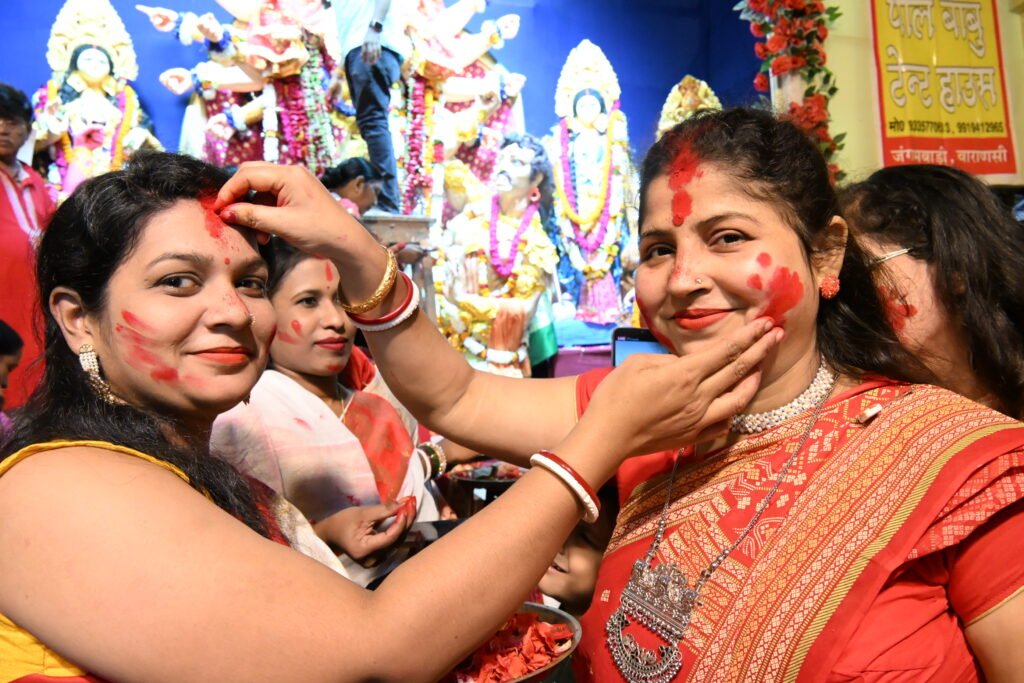 देर शाम गोल्डेन स्पोर्टिंग क्लब (Varanasi) की प्रतिमा को देवनाथपुरा की तंग गलियों से बाहर लाया गया। लगभग 15 फीट ऊंची प्रतिमा को सड़क तक पहुंचने में करीब एक घंटे से अधिक समय लग गया। इस दौरान महिलाओं ने सिंदूर खेला की रस्म निभाई, खोइंचा भरकर माता को अगले वर्ष फिर आने का आमंत्रण दिया और आंखों में आंसू लिए विदाई दी।