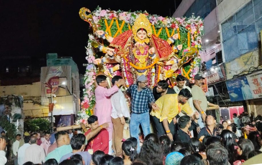 गोदौलिया पहुंचने के बाद परंपरा के अनुसार प्रतिमा ने पांच परिक्रमा की, जिसके बाद आतिशबाजी ने माहौल को और भी ज्यादा उत्सवमय कर दिया। वहीं मां की इस प्रतीमा (Varanasi) के विसर्जन का ड्रोन वीडियो इसकी भव्यता को बखूबी दर्शाता है। इसके बाद शोभायात्रा मैदागिन की ओर बढ़ी और रात करीब 9:55 बजे मां दुर्गा की प्रतिमा का कंपनी बाग स्थित मंदाकिनी कुंड में विधिवत विसर्जन किया गया।