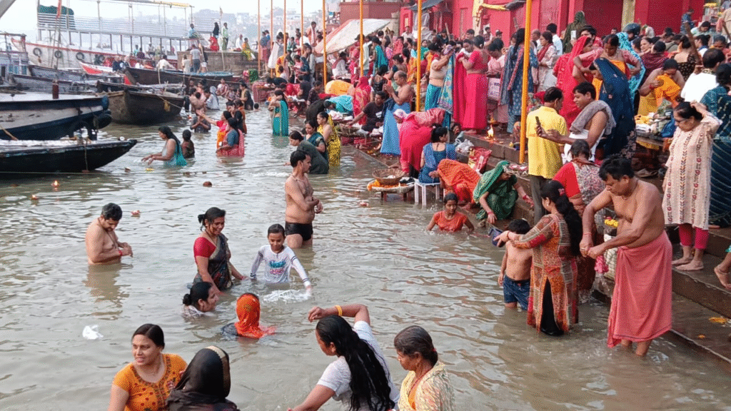 Varanasi: श्रद्धालुओं ने किया गंगा स्नान