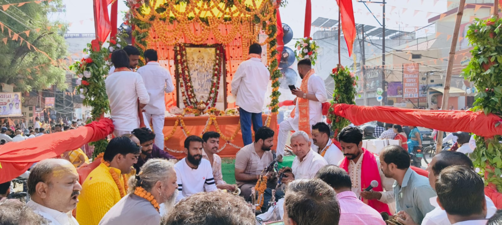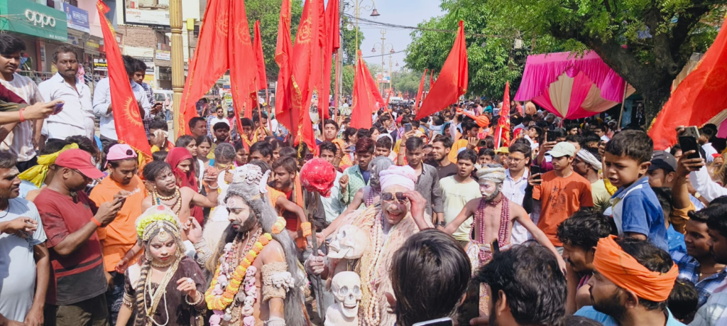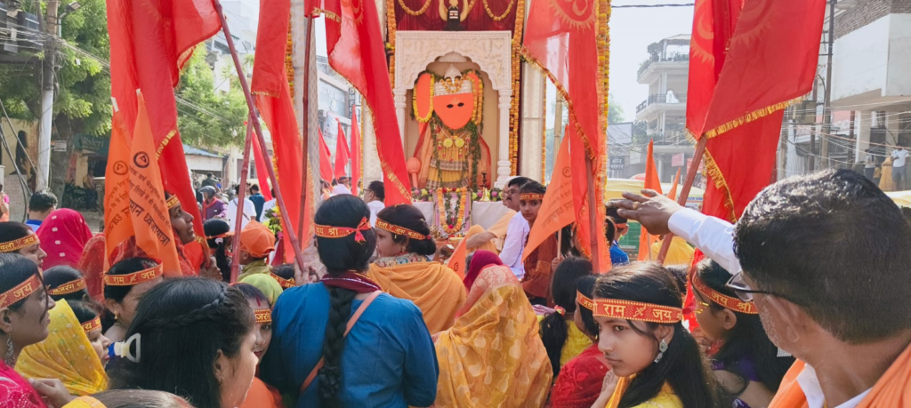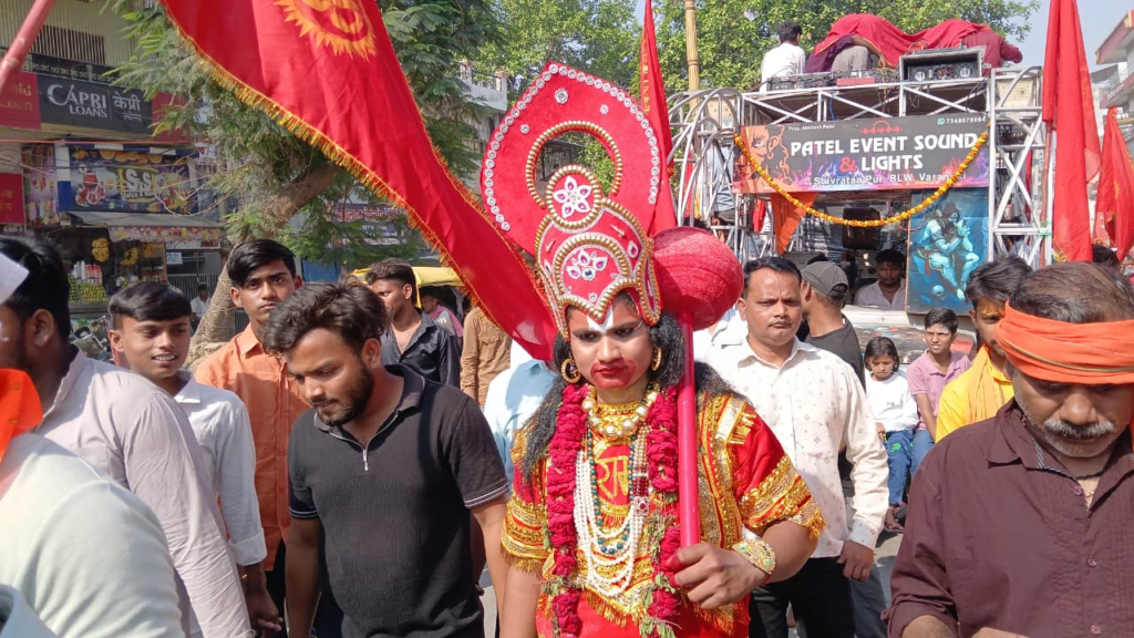 सुबह सूर्य की पहली किरण के साथ ही भिखारीपुर तिराहे पर 60 फीट लम्बे वाहन पर ‘राम दरबार’ रथ और पालकी पर विराजे हनुमान का 11 ब्राह्मणों द्वारा पूजन व आरती की गई। साथ ही 100 से ज्यादा डमरूओं की गड़गड़ाहट और ढोल-नगाड़ों की थाप के बीच यात्रा का शुभारंभ हुआ। यात्रा का मुख्य आकर्षण भक्तों (Varanasi) के हाथों में लहराती केसरिया ध्वजाएँ और 1100 गदा रही।
