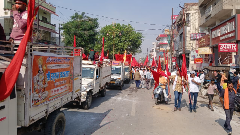 • Varanasi: 25,000 भक्तों संग काशी में निकली भव्य हनुमान ध्वज यात्रा, 60 फीट लम्बे रथ पर विराजे प्रभु, 7 राज्यों से आई झाकियां