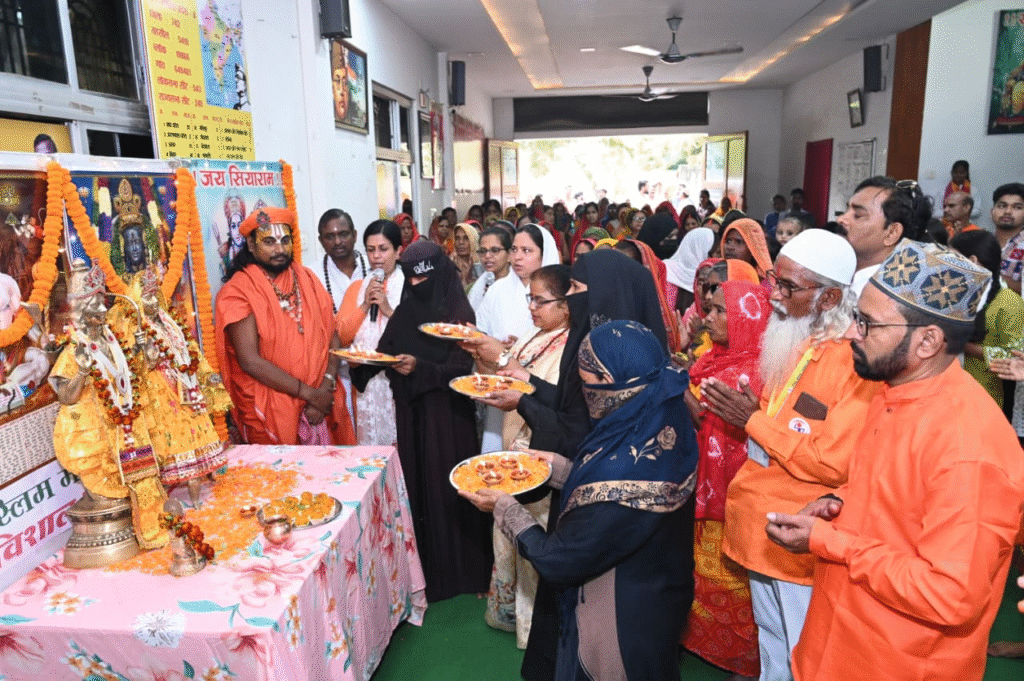इस अवसर पर जगद्गुरु बालक देवाचार्य जी महाराज ने कहा कि इस तस्वीर को देखकर दुनियां के लोग सबक लें। घर परिवार से लेकर देश में (Varanasi) शांति स्थापित करनी है तो राम के नाम का ही सहारा लें। राम की संस्कृति सभी को साथ लेकर चलने की है। बिना भेद किये साबको गले लगाने की है। मुस्लिम महिलाओं ने अपने पूर्वजों की संस्कृति को माना, अपने मूल जड़ से जुड़ीं। इनका प्रयास रामराज्य की दिशा में बड़ा कदम है।