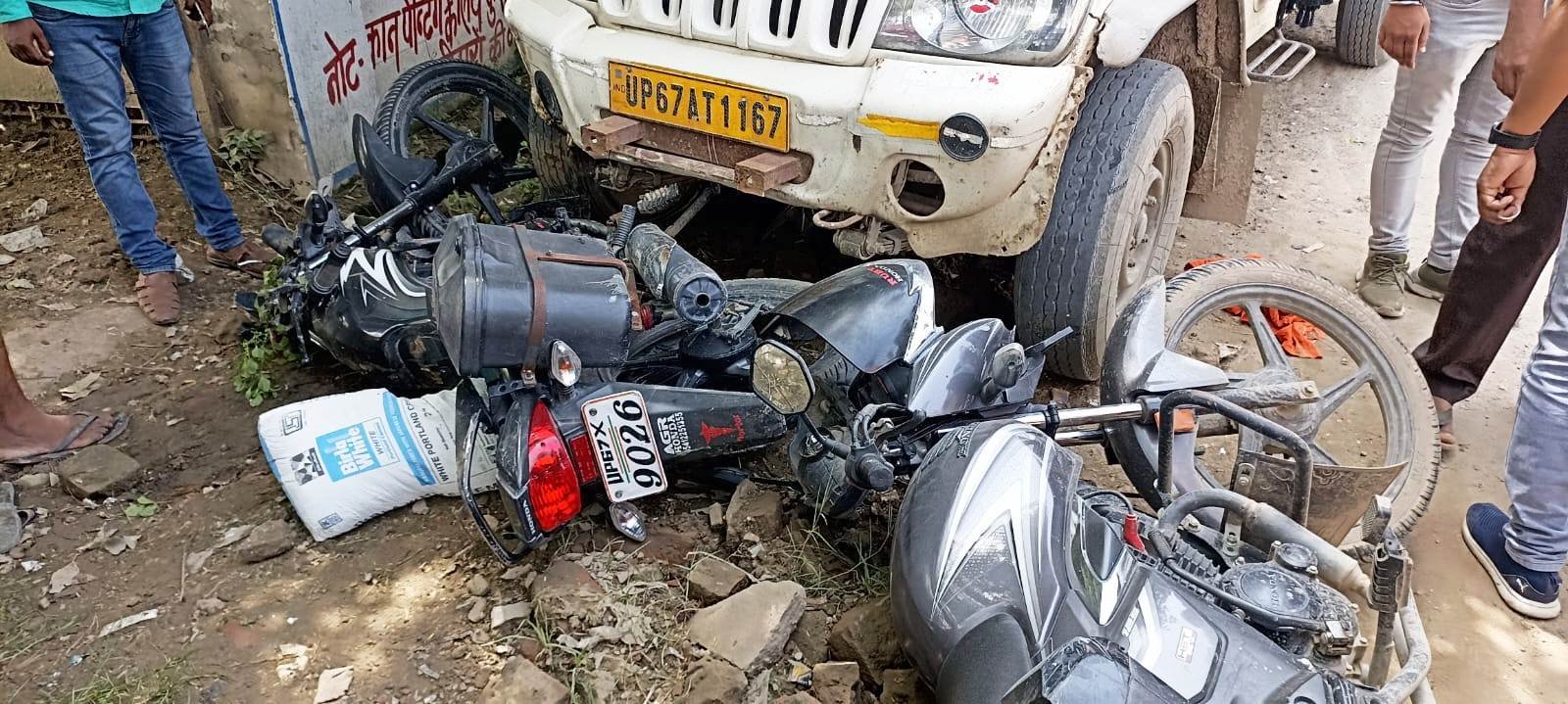 Varanasi News: वाराणसी के रामनगर थाना क्षेत्र के पंचवटी में शनिवार को एक बड़ा हादसा हो गया। रामनगर पंचवटी रोड पर स्थित एक पशु चिकित्सालय के पास एक बोलेरो ने पांच बाइक को रौंदते हुए तीन व्यक्ति को घायल कर दिया। ज्सिके बाद चारों ओर अफरातफरी मच गई।