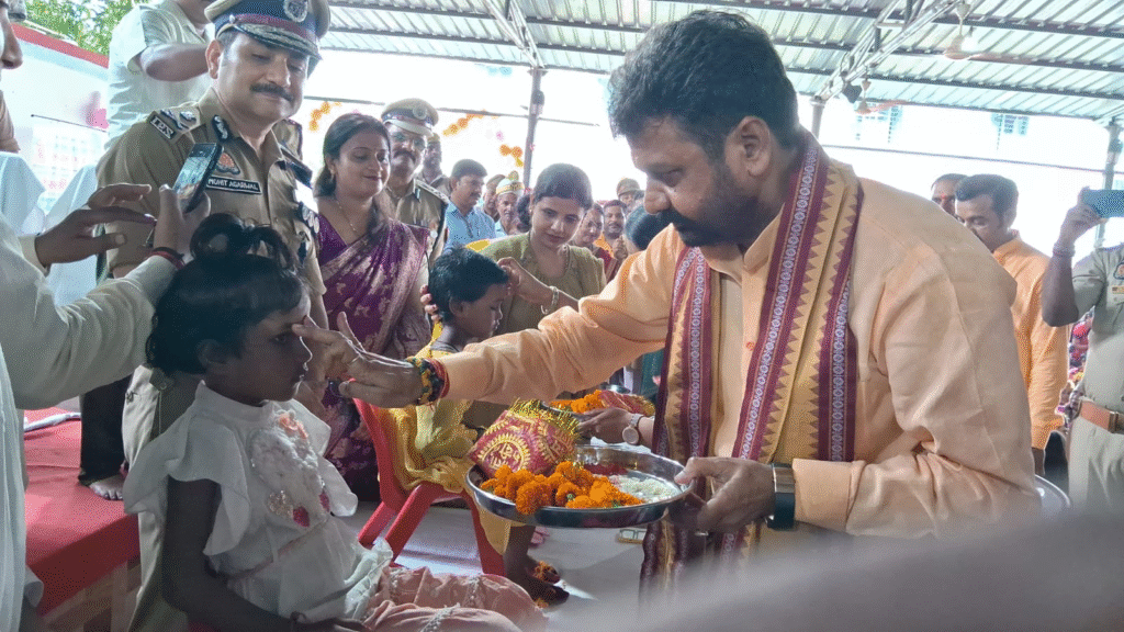 Varanasi: शारदीय नवरात्रि की अष्टमी पर काशी की पावन धरती पर मां दुर्गा की भक्ति और नारी शक्ति का अनूठा संगम देखने को मिला। पुलिस लाइन, वाराणसी में मिशन शक्ति के तहत 501 कन्याओं का पूजन कार्यक्रम आयोजित हुआ। इस दौरान प्रदेश सरकार के मंत्री, जनप्रतिनिधि और प्रशासनिक अधिकारी एक साथ मौजूद रहे और मातृ शक्ति के प्रति सम्मान का संदेश दिया।