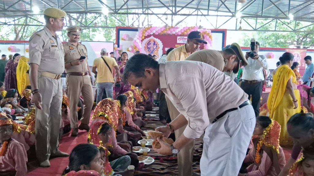 कार्यक्रम में राज्य मंत्री दयाशंकर मिश्र ‘दयालु’, एमएलसी धर्मेंद्र सिंह, पुलिस कमिश्नर मोहित अग्रवाल, जिलाधिकारी सत्येंद्र कुमार और अपर पुलिस आयुक्त शिवहरी मीना ने स्वयं कन्याओं के पांव पखारकर उनका पूजन किया। इस दौरान वातावरण भक्ति गीतों और जयकारों से गूंज उठा।