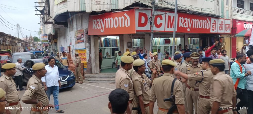 भाजपा व हिंदू संगठन के कार्यकर्ताओं को पुलिस ने चेतगंज थाने के सामने ही रोक दिया। इस दौरान कुछ गहमागहमी भी हुई। आक्रोशित भाजपा कार्यकर्ता व हिंदू संगठन के लोगों ने चेतगंज थाने के सामने राहुल गाँधी का प्रतीकात्मक पुतला फूंक प्रदर्शन शुरू कर दिया। हिंदू संगठन के कार्यकर्ताओं ने राहुल गांधी के खिलाफ जमकर नारेबाजी भी की। इस दौरान भारी संख्या में पुलिस बल तैनात रही।