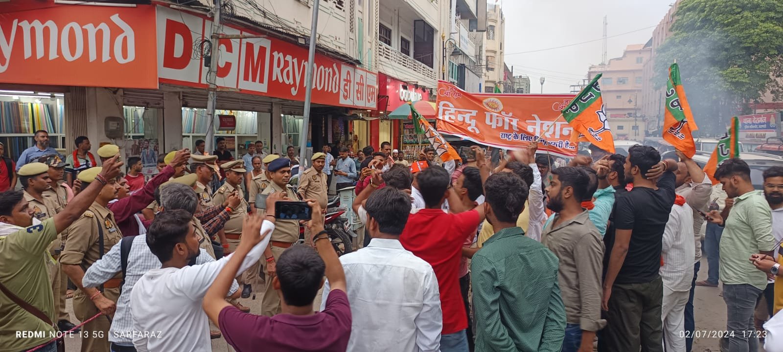 भाजपा व हिंदू संगठन के कार्यकर्ताओं को पुलिस ने चेतगंज थाने के सामने ही रोक दिया। इस दौरान कुछ गहमागहमी भी हुई। आक्रोशित भाजपा कार्यकर्ता व हिंदू संगठन के लोगों ने चेतगंज थाने के सामने राहुल गाँधी का प्रतीकात्मक पुतला फूंक प्रदर्शन शुरू कर दिया। हिंदू संगठन के कार्यकर्ताओं ने राहुल गांधी के खिलाफ जमकर नारेबाजी भी की। इस दौरान भारी संख्या में पुलिस बल तैनात रही।