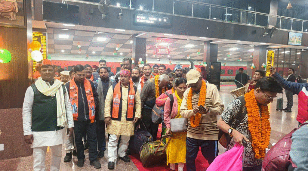 पहले दल के (Varanasi) स्टेशन पर पहुँचते ही माहौल उत्साह से भर उठा। छात्रों का पारंपरिक तरीके से मालाएँ पहनाकर, ढोल-नगाड़ों और ‘हर हर महादेव’ के जयघोष के बीच स्वागत किया गया। आयोजक संस्थाओं के प्रतिनिधियों ने सभी आगंतुकों का गर्मजोशी से अभिवादन किया और उन्हें काशी की आध्यात्मिक व सांस्कृतिक झलक से परिचित कराया। इस दौरान भाजपा एमएलसी हंसराज विश्वकर्मा मौजूद रहे।