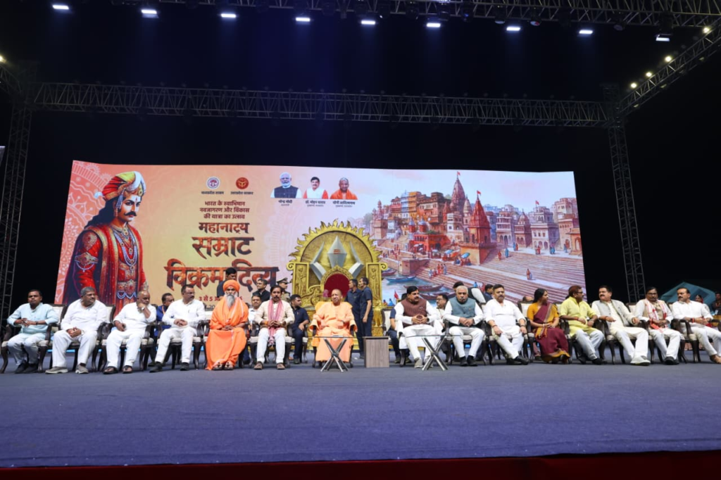 Kashi: उज्जैन के सम्राट विक्रमादित्य के सुशासन और न्यायप्रियता को जन-जन तक पहुँचाने के लिये शुक्रवार को तीन दिवसीय महानाट्य “सम्राट विक्रमादित्य” का जीवंत मंचन किया गया। यह कार्यक्रम बीएलडब्ल्यू (Kashi) स्थित सूर्य सरोवर मैदान में हुआ। यह भव्य आयोजन 3 अप्रैल से 5 अप्रैल तक संचालित होगा। कार्यक्रम की शुरुआत उत्तर प्रदेश के मुख्यमंत्री योगी आदित्यनाथ और मध्य प्रदेश के मुख्यमंत्री मोहन यादव के मुख्य आतिथ्य में हुई। वहीं मुख्यमंत्री मोहन ने 700 किलोग्राम की विक्रमादित्य वैदिक घड़ी योगी आदित्यनाथ को भेंट किया। जिसे शनिवार को श्री बाबा काशी विश्वनाथ मंदिर में स्थापित किया जायेगा। उद्घाटन समारोह में उपस्थित जनसमूह, भव्य मंच सज्जा, और जीवंत ऐतिहासिक प्रस्तुतियों ने वाराणसी को मानो प्राचीन काल के स्वर्णिम युग में पहुंचा दिया।