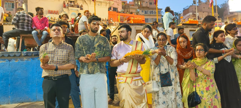 गंगा सेवा निधि के अध्यक्ष सुशांत मिश्रा, कोषाध्यक्ष आशीष तिवारी और सचिव हनुमान यादव ने क्रिकेटर का पारंपरिक तरीके से स्वागत किया। उन्हें अंग वस्त्र, रुद्राक्ष की माला और प्रसाद भेंट कर सम्मानित किया गया।